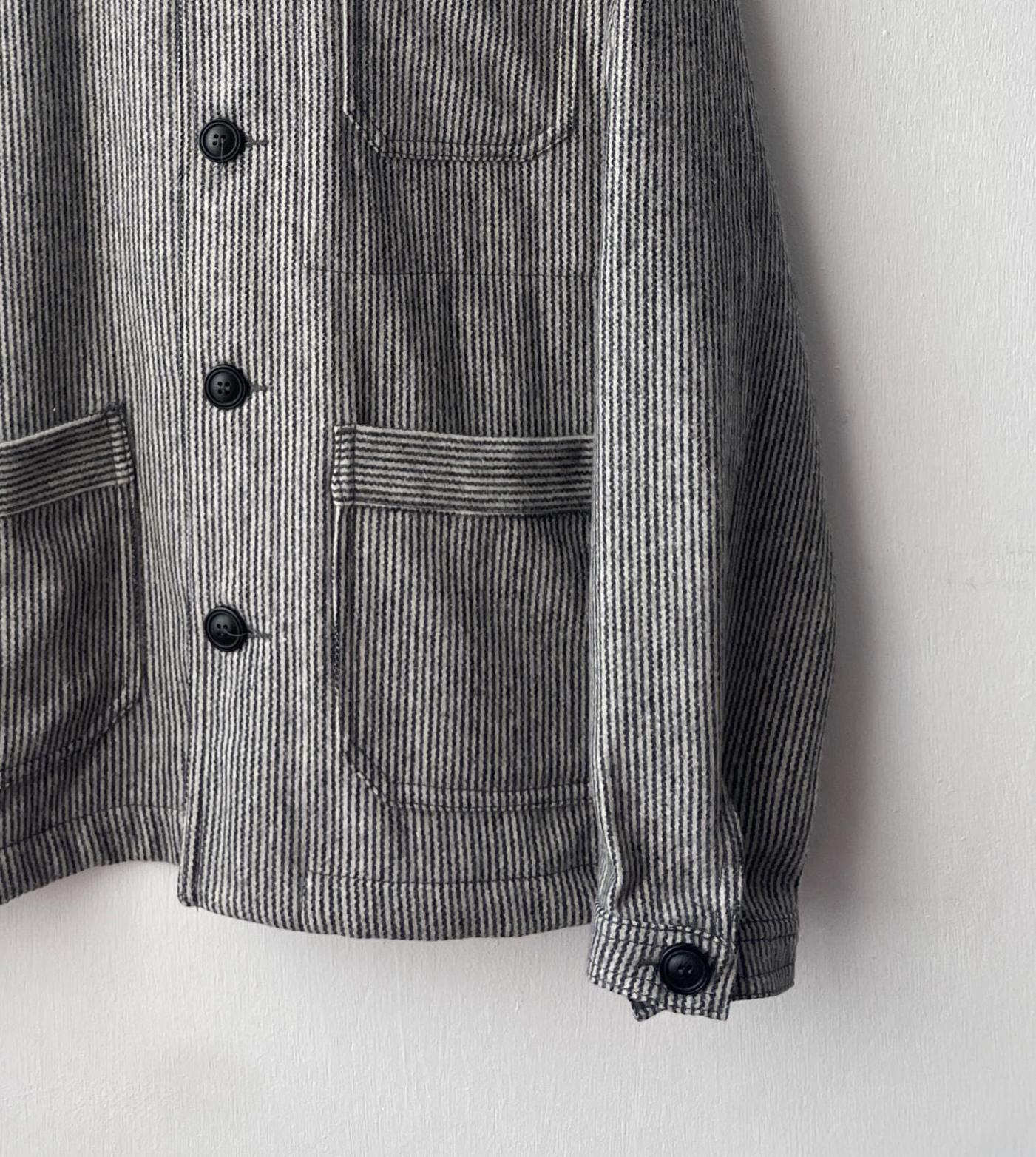 Having specialised in selling vintage navy chore jackets or 'bleu de travail' for some time now (also available in our Etsy shop) we wanted to design products that kept the same utilitarian feel and high quality manufacturing as the vintage designs, but offered a more modern fit.
