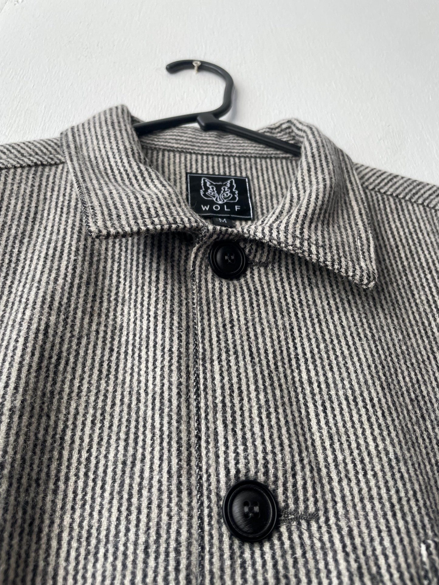 A new twist on our regular WOLF jackets - this time we've gone for a wool fabric with a contrasting horizontal pocket trim detail. You'll also find a huge internal pocket in addition to the 3 outer.