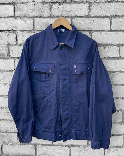 Vintage-Arbeitsjacken aus europäischer Baumwolle in Marineblau. Es gibt 2 oder 4 Taschen.