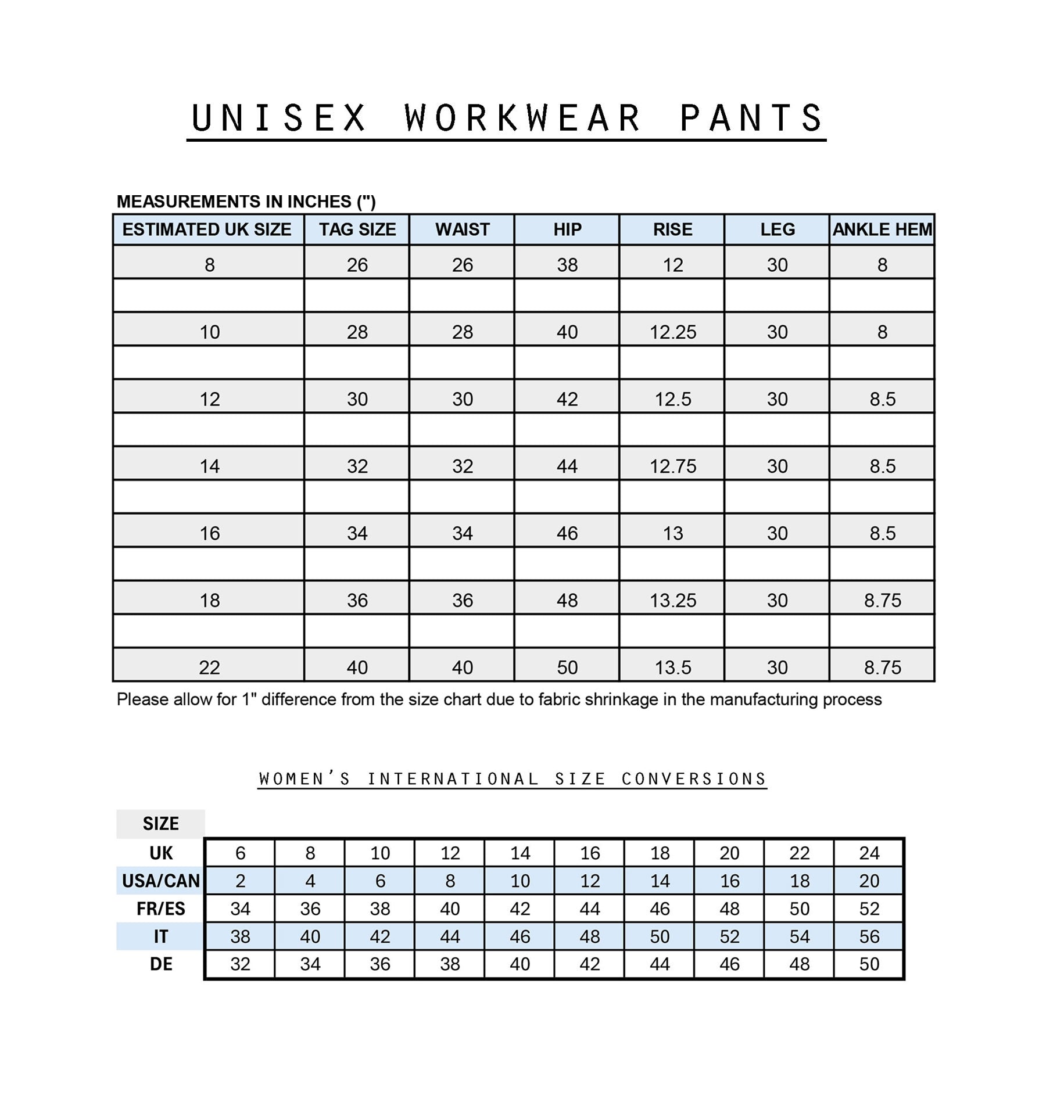 Approx ladies UK size conversions