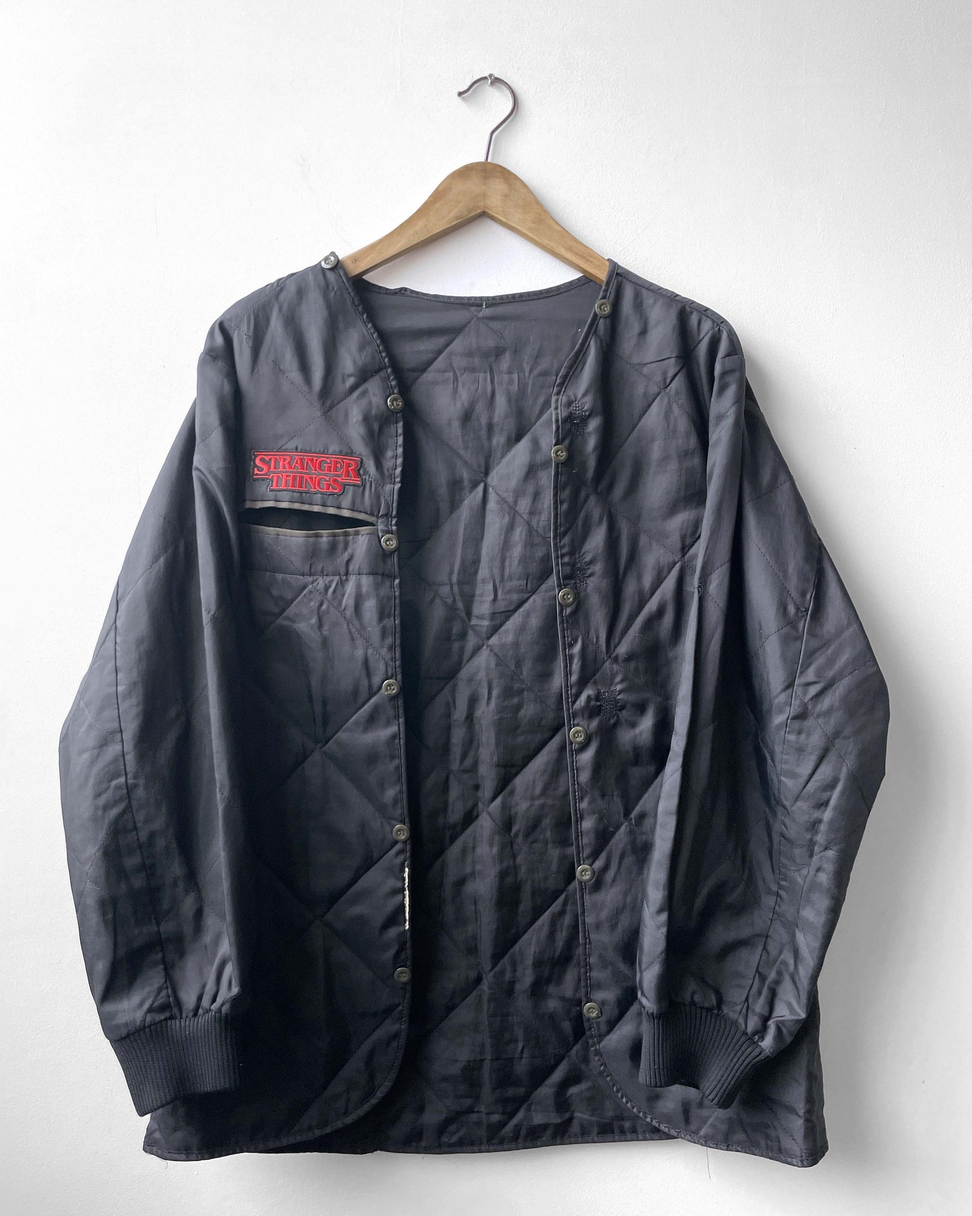 Unisex black vintage parka liners from the late 90s-early 00s. Taken from a genuine issue army jacket. Iron on Stranger Things patch.
