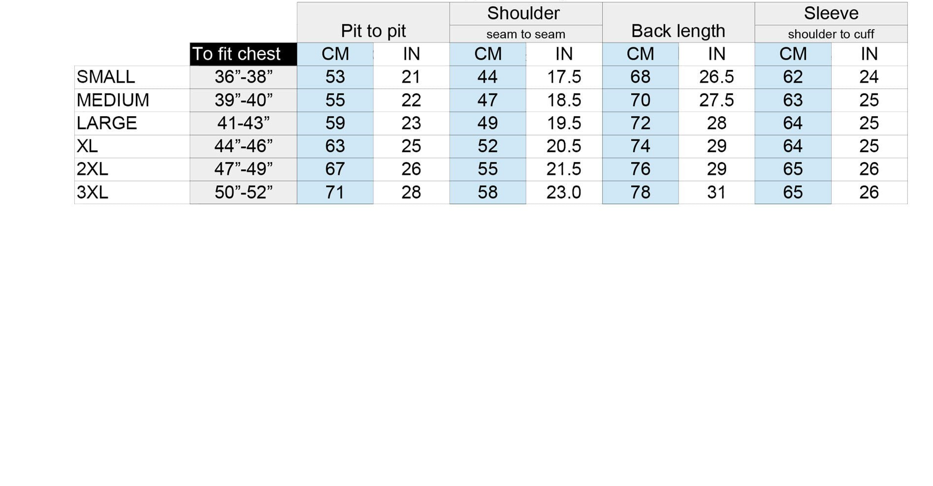 - Please note this is a unique size chart to this product and differs to our other WOLF and WOLF moleskin jackets.