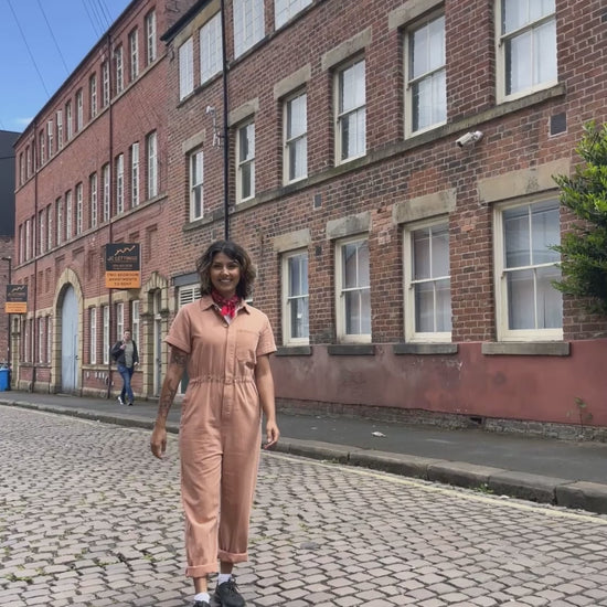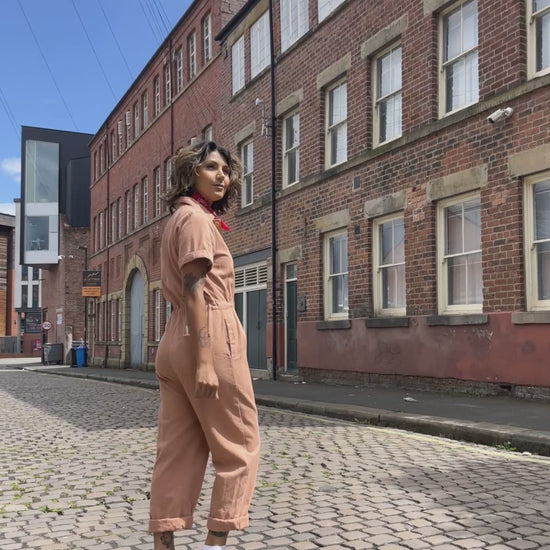 Vintage style bleu de travail French railroad cotton workwear overalls with a pink twist!