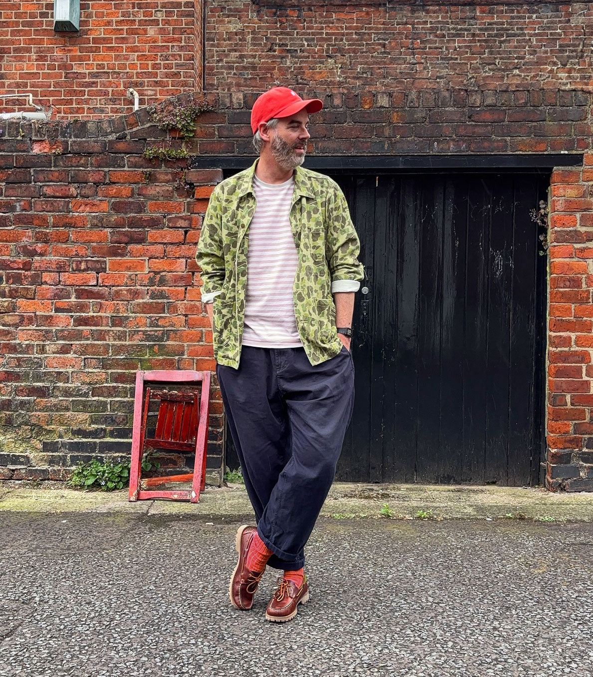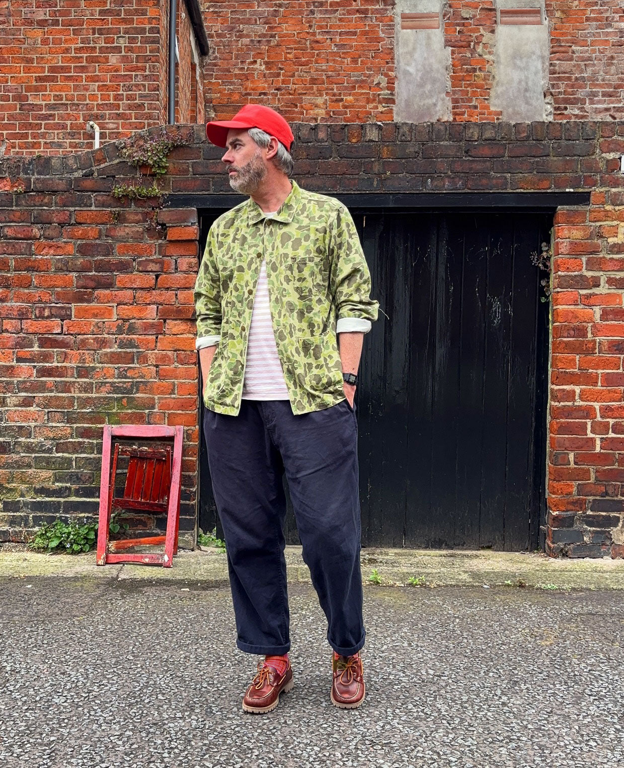 Our take on the classic 1940s US Frog Skin camo army jacket. This jacket combines the utility look and feel of your classic chore jacket using our signature faded washed herringbone fabric, with the colourway and pattern of vintage military wear.