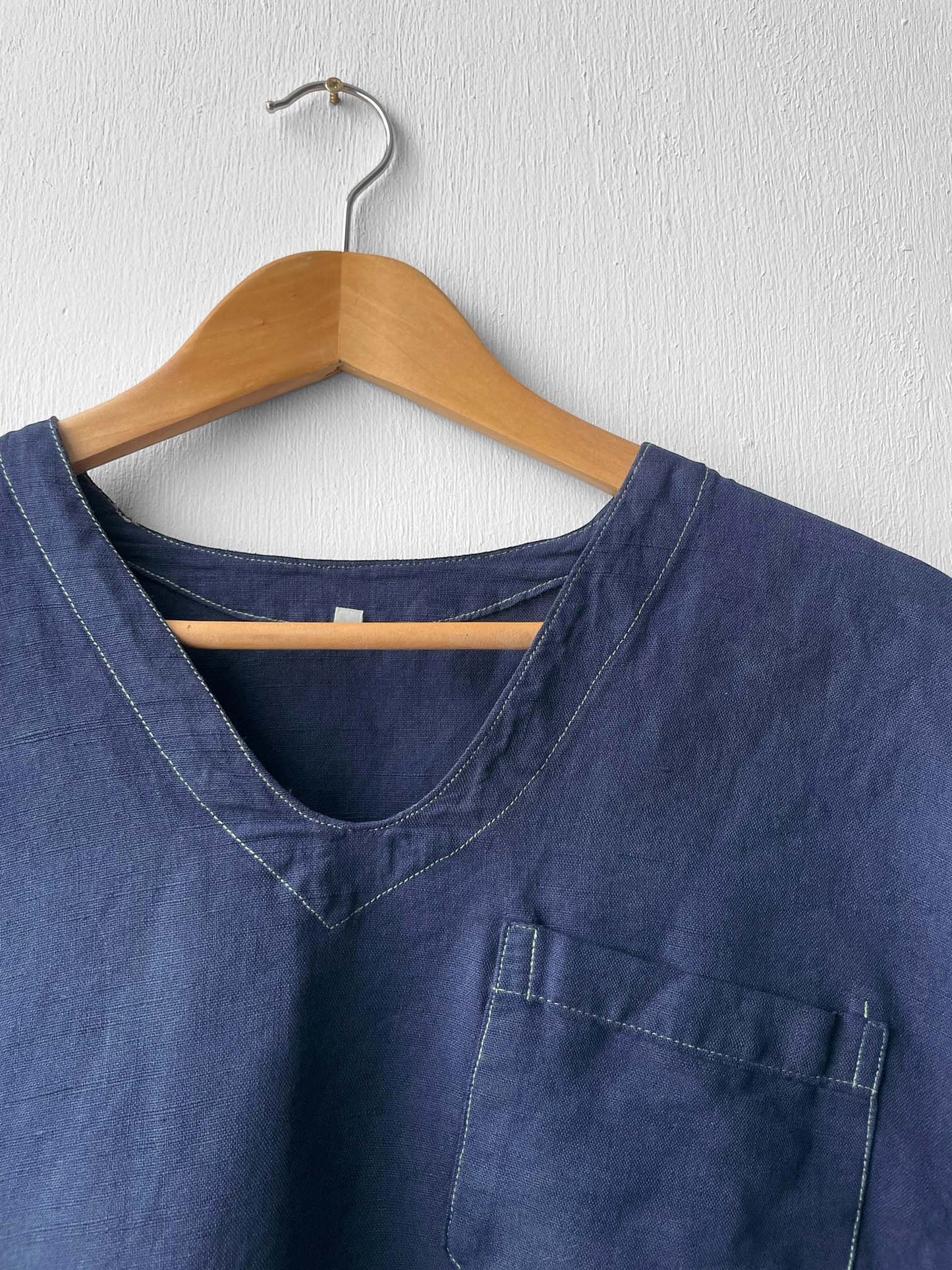 Corte holgado y relajado. Ten en cuenta que el largo de la espalda y de los brazos es más corto de lo habitual en esta prenda, por lo que se puede usar como una blusa con mangas 3/4.