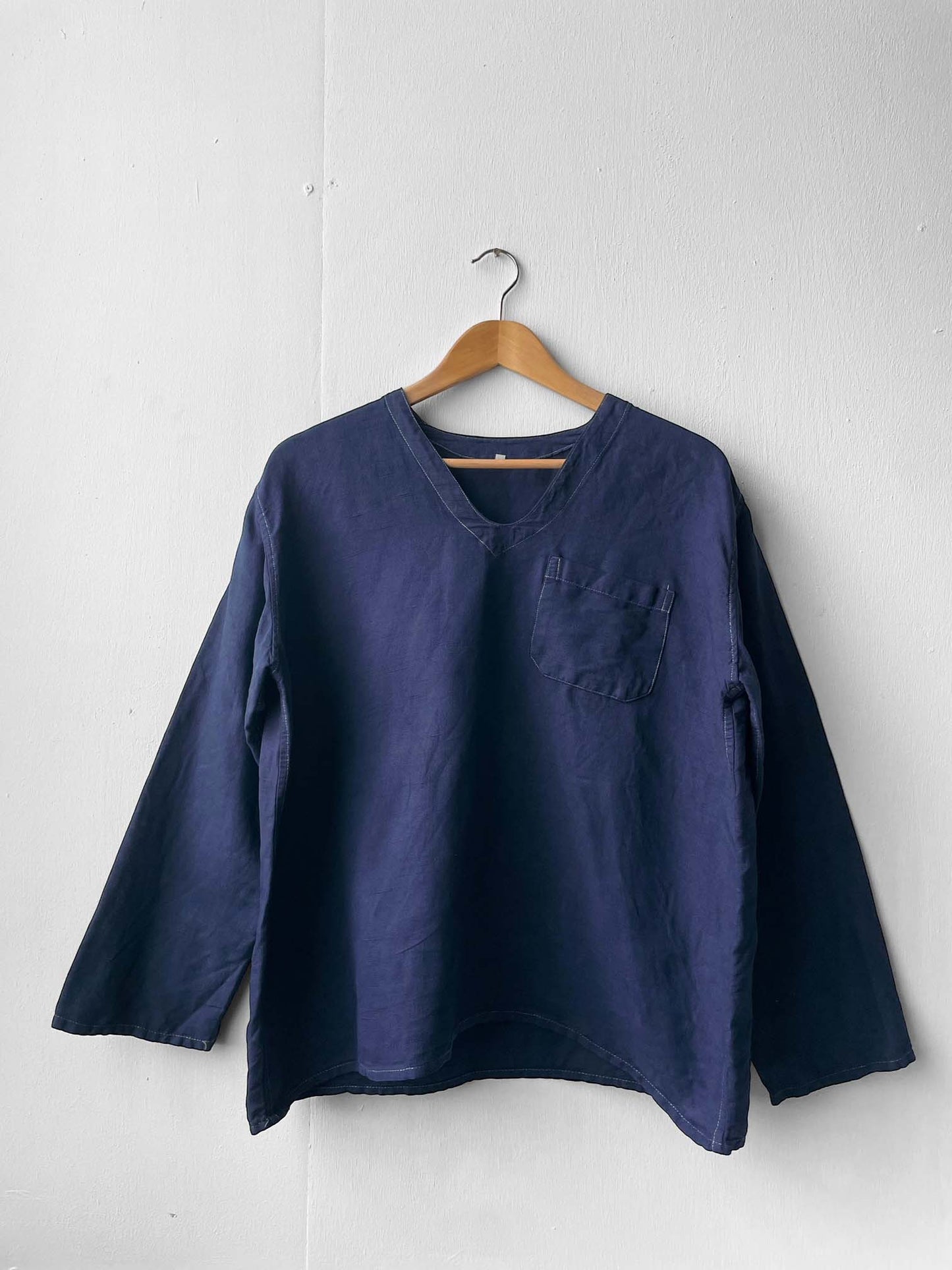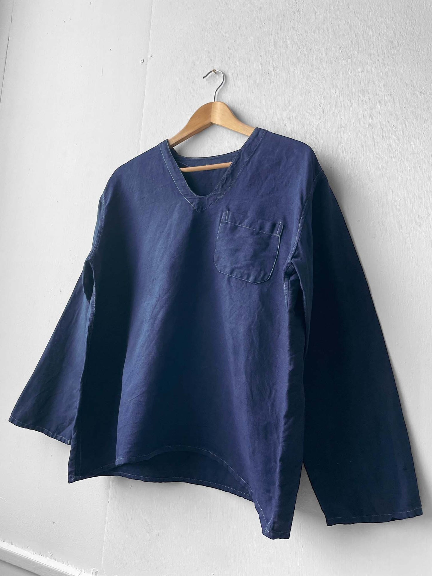 Tenemos un puñado de estas hermosas batas de algodón sueco con escote en V rediseñadas. Rediseñadas profesionalmente en azul marino, marrón caramelo cálido y rosa violeta. Una capa base realmente buena que luce genial con una chaqueta de trabajo francesa o prendas militares vintage.