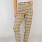 Pantalones a cuadros cónicos de cintura alta en color beige