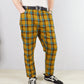 Pantalones de cuadros escoceses de corte ajustado en color mostaza y azul