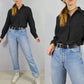 Camisas suecas vintage para damas, cuello abuelo y botones, de los años 80, de algodón suave y desgastado
