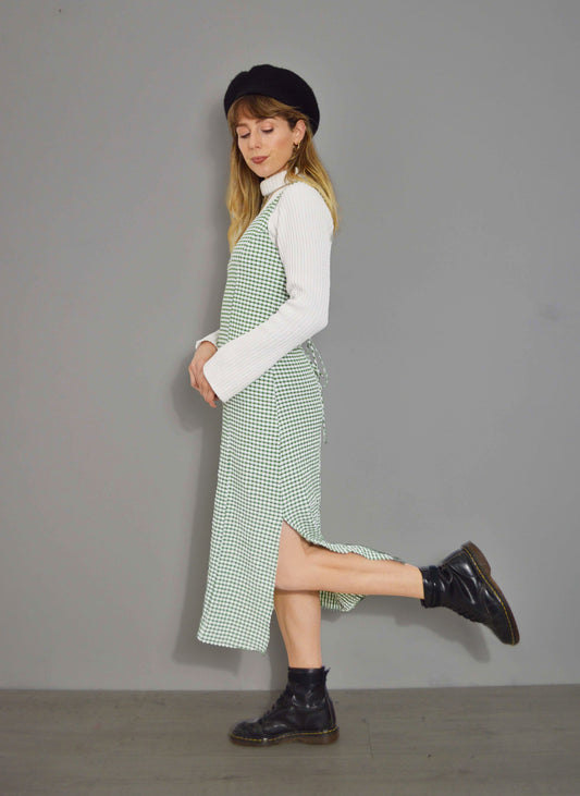 French Gingham Meadow Green Maxi Dress