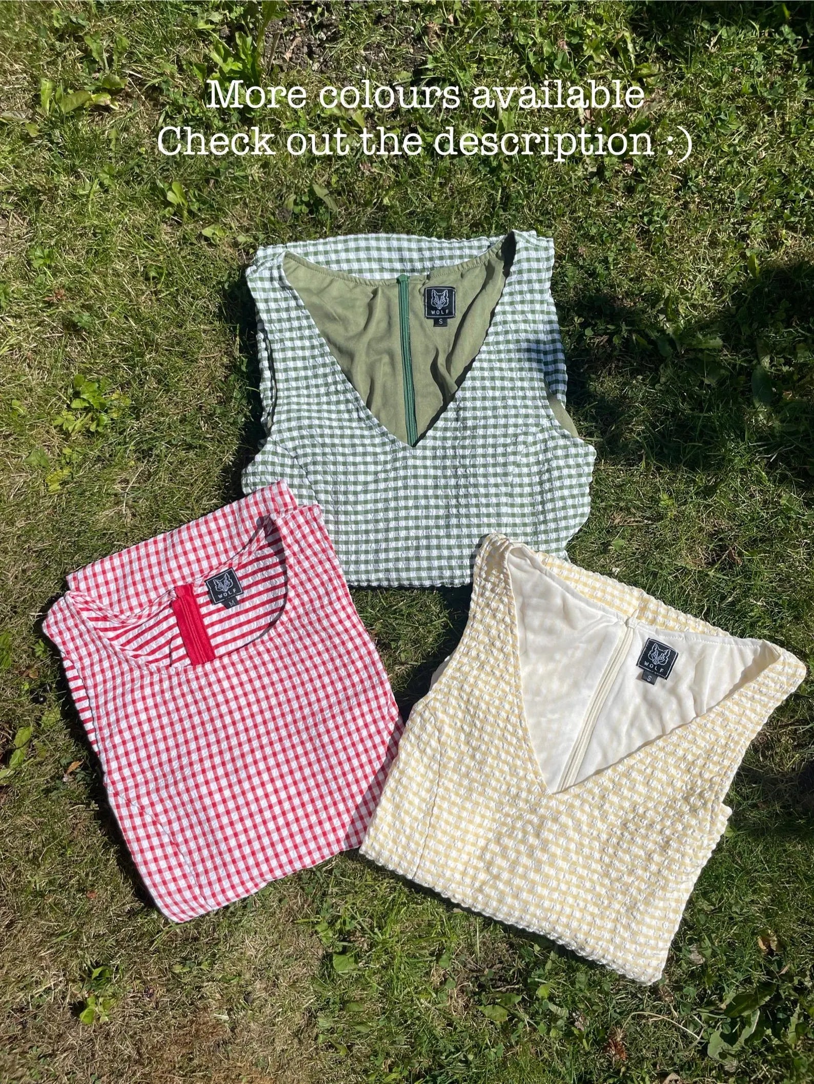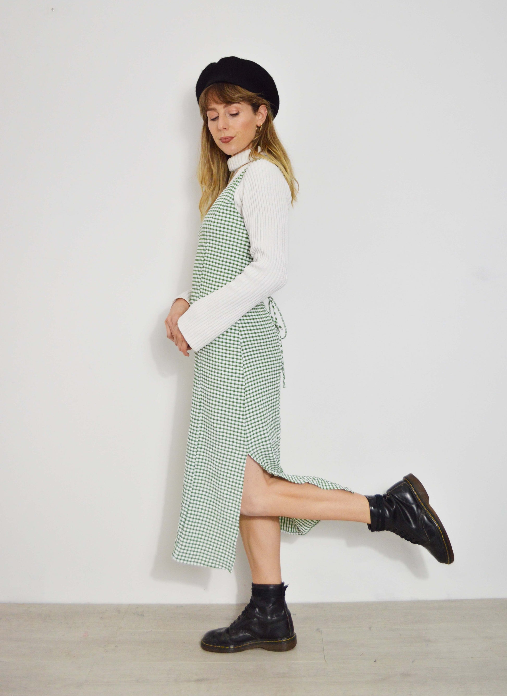 Unique design to us at WOLF. Vintage inspired French gingham green & white tartan check dress with adjustable ties at the back so you can get the perfect fit :)