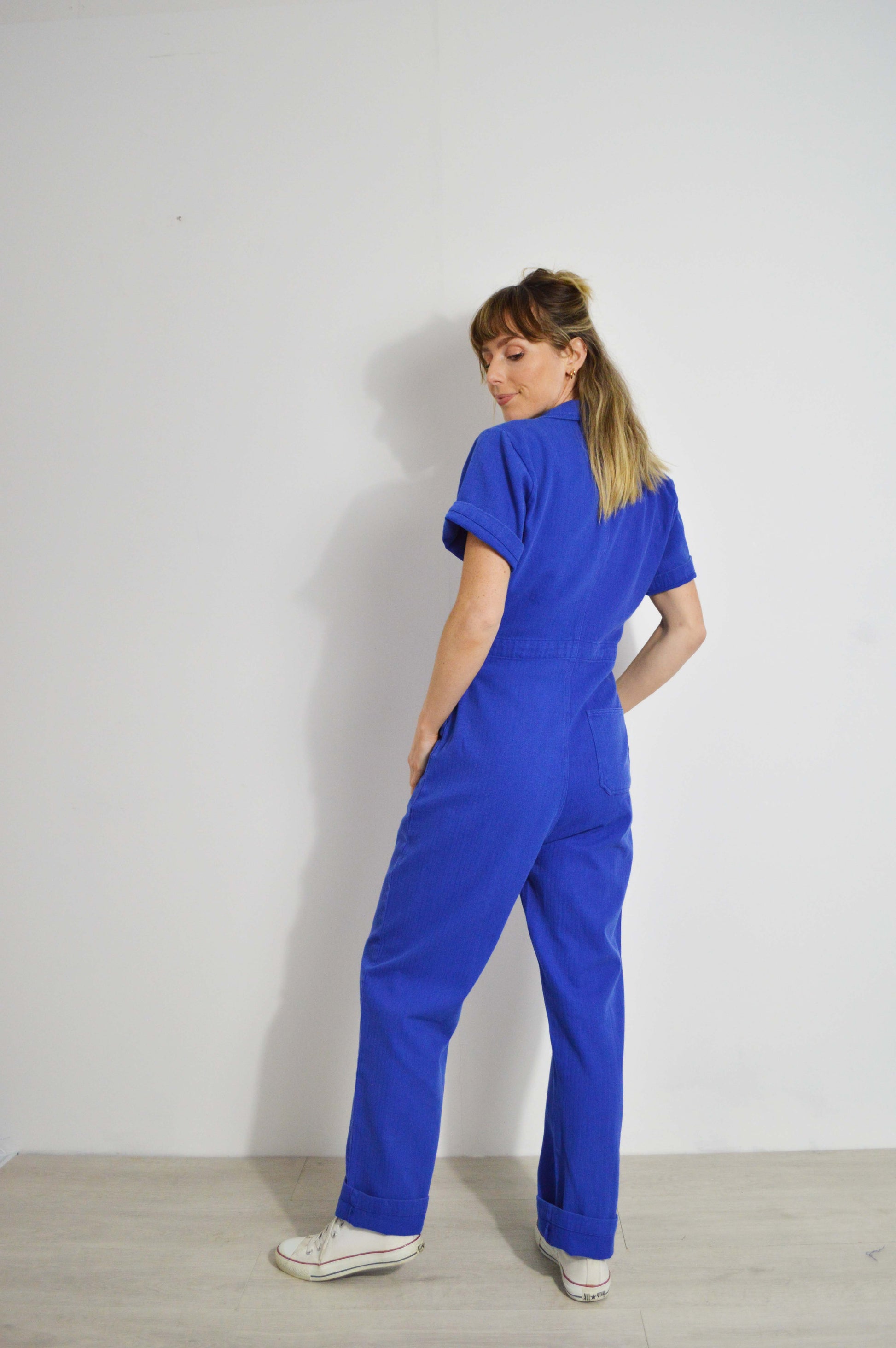 Unisex Blue French Coveralls Short Sleeve Workwear Jumpsuit