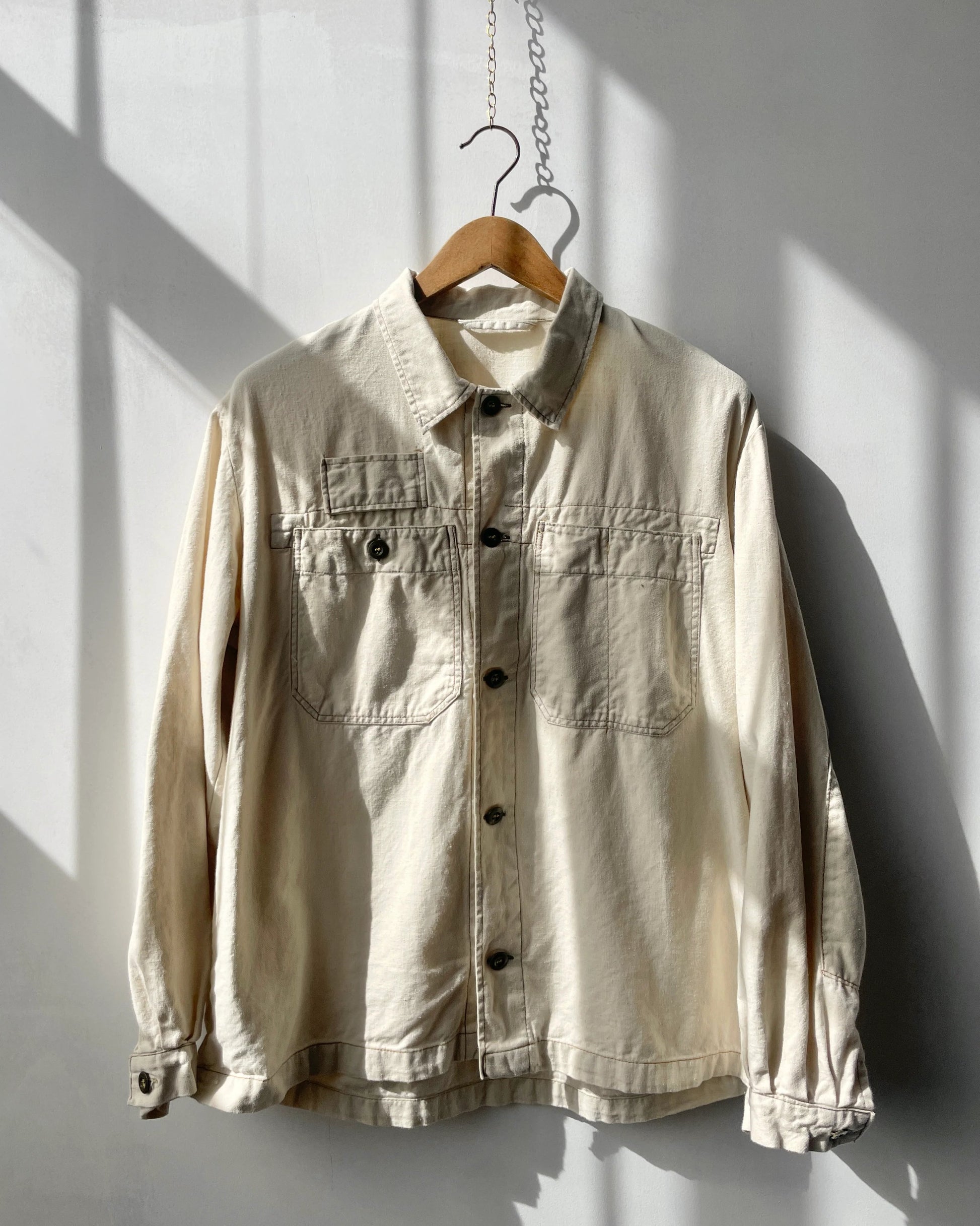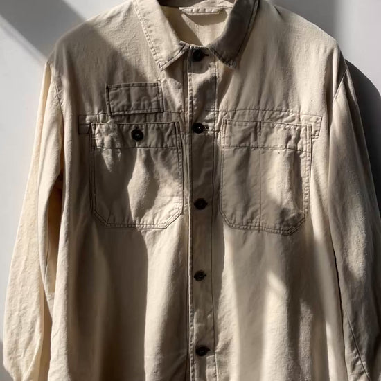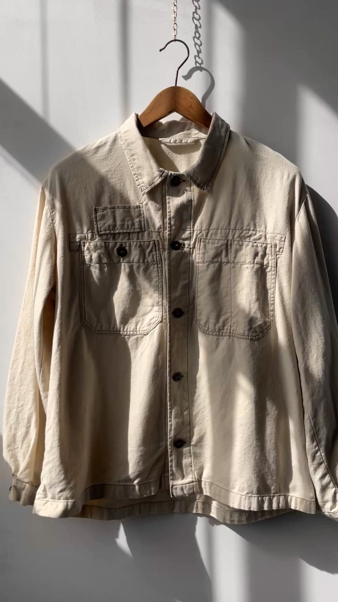 Vintage 100% cotton European worker jackets in faded camel brown, available in regular length and short length. We recommend the short length if you are 5ft 8 tall or less.