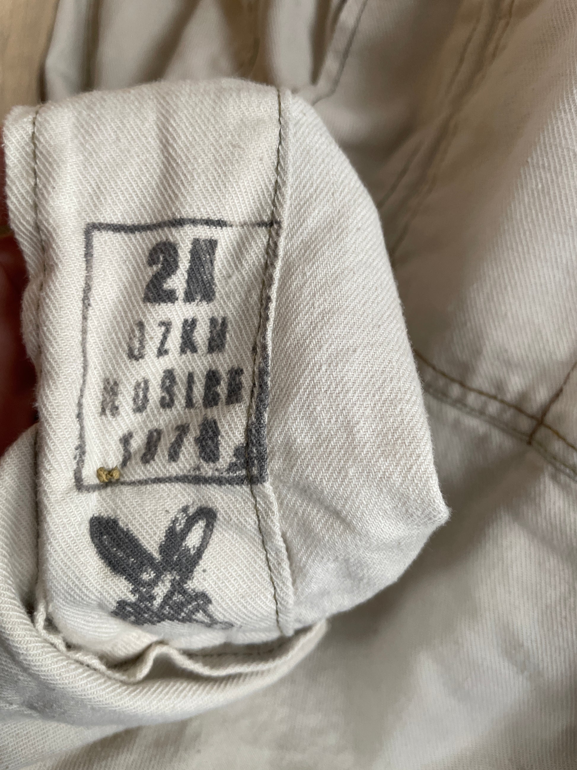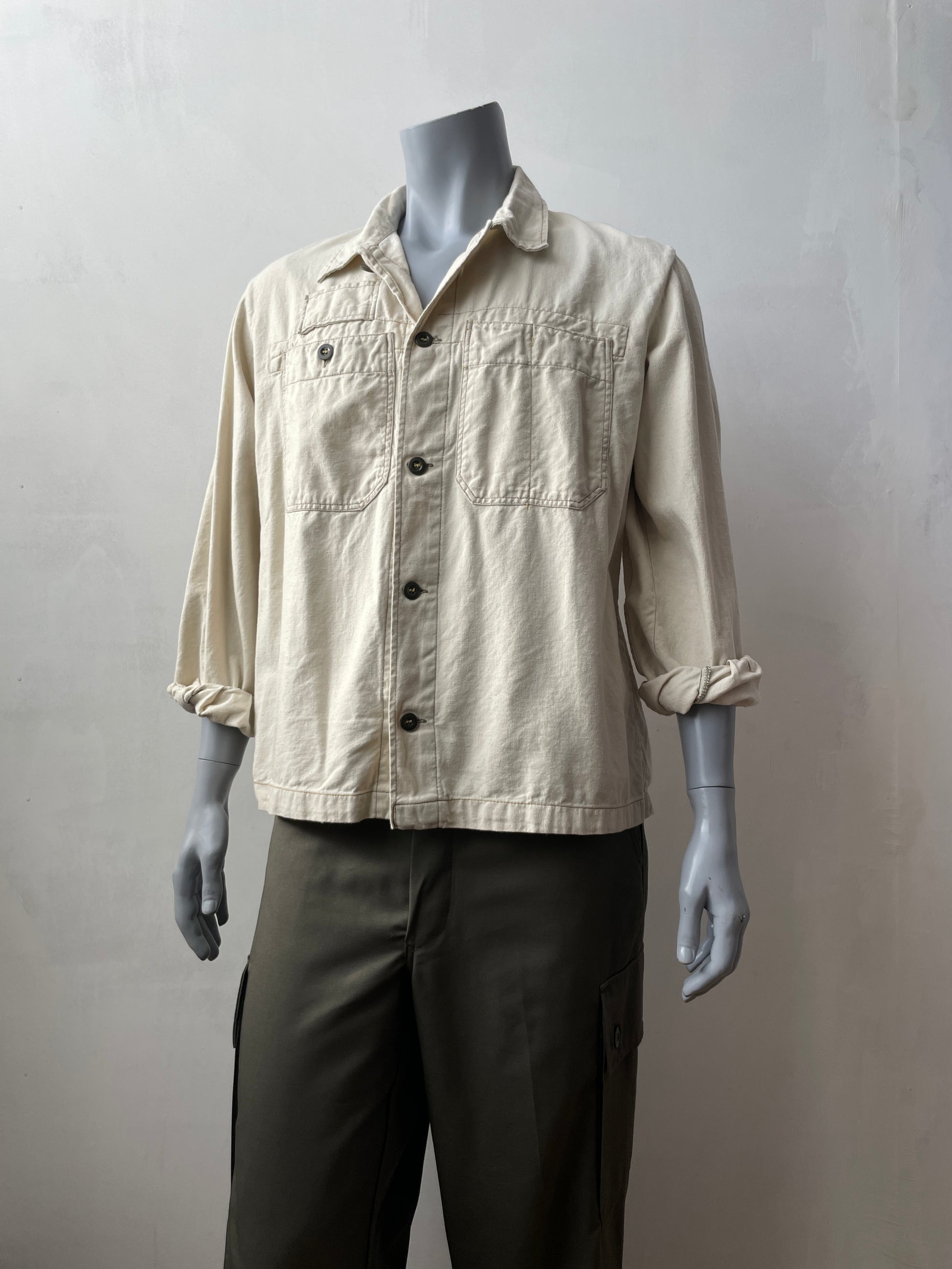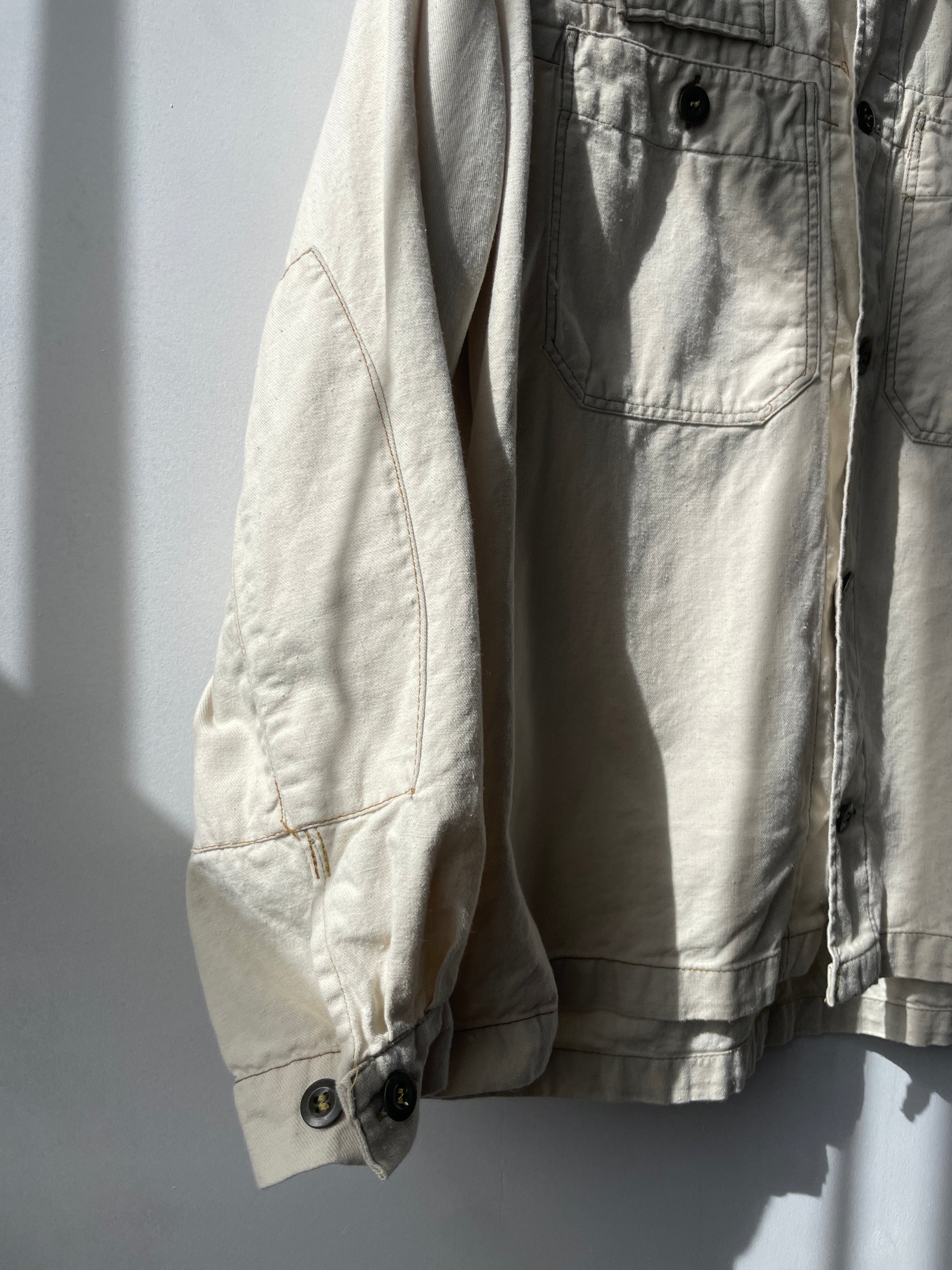 Vintage 100% cotton European worker jackets in faded camel brown, available in regular length and short length. We recommend the short length if you are 5ft 8 tall or less.