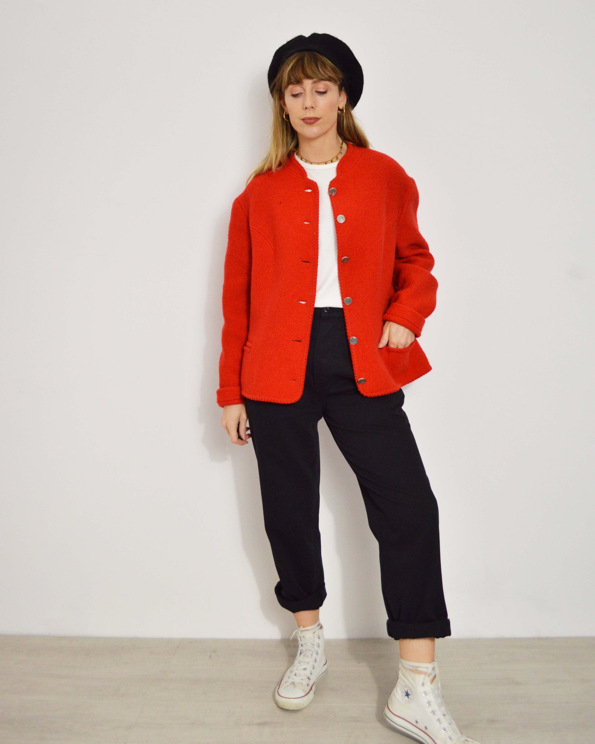 Vintage European Wool V-Neck Jacket Red