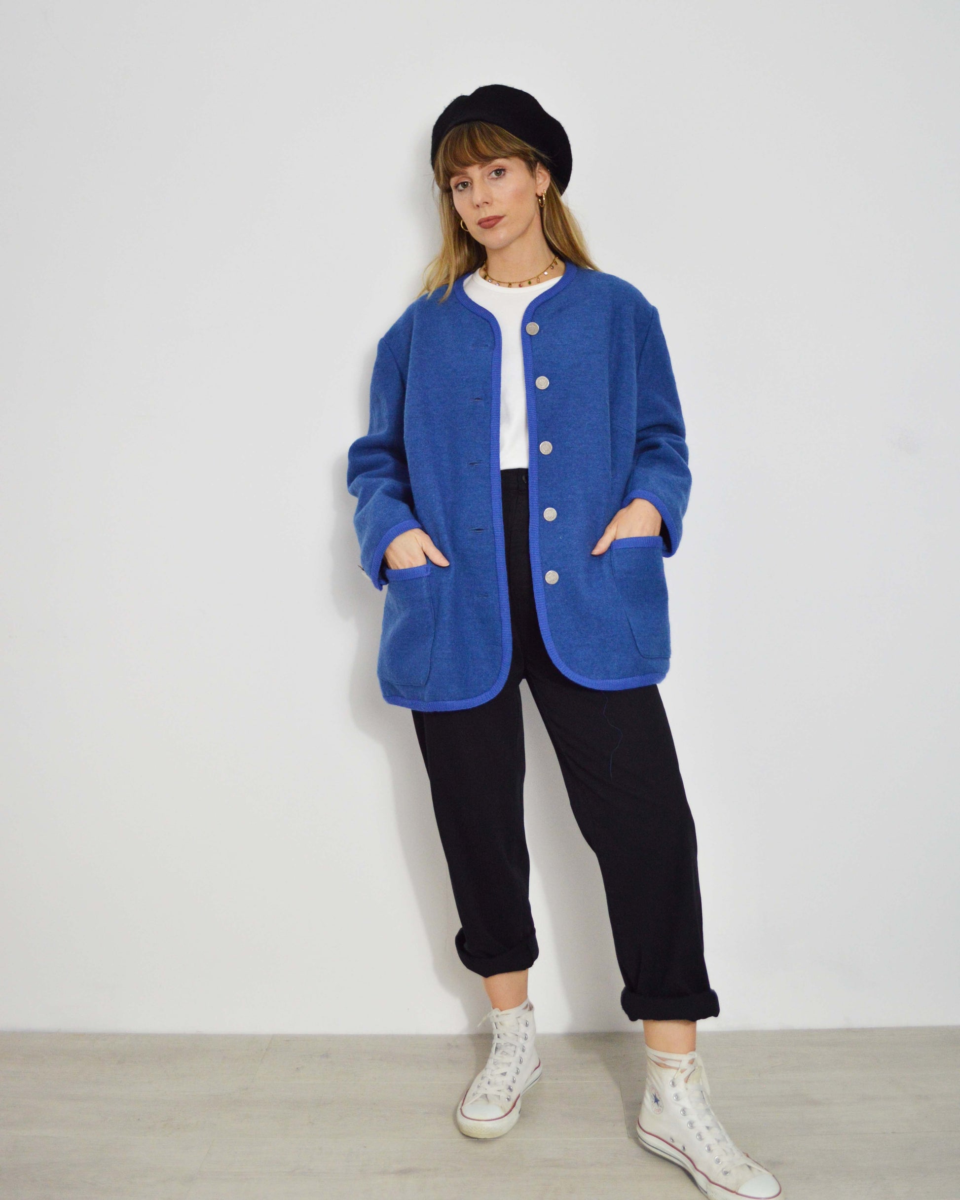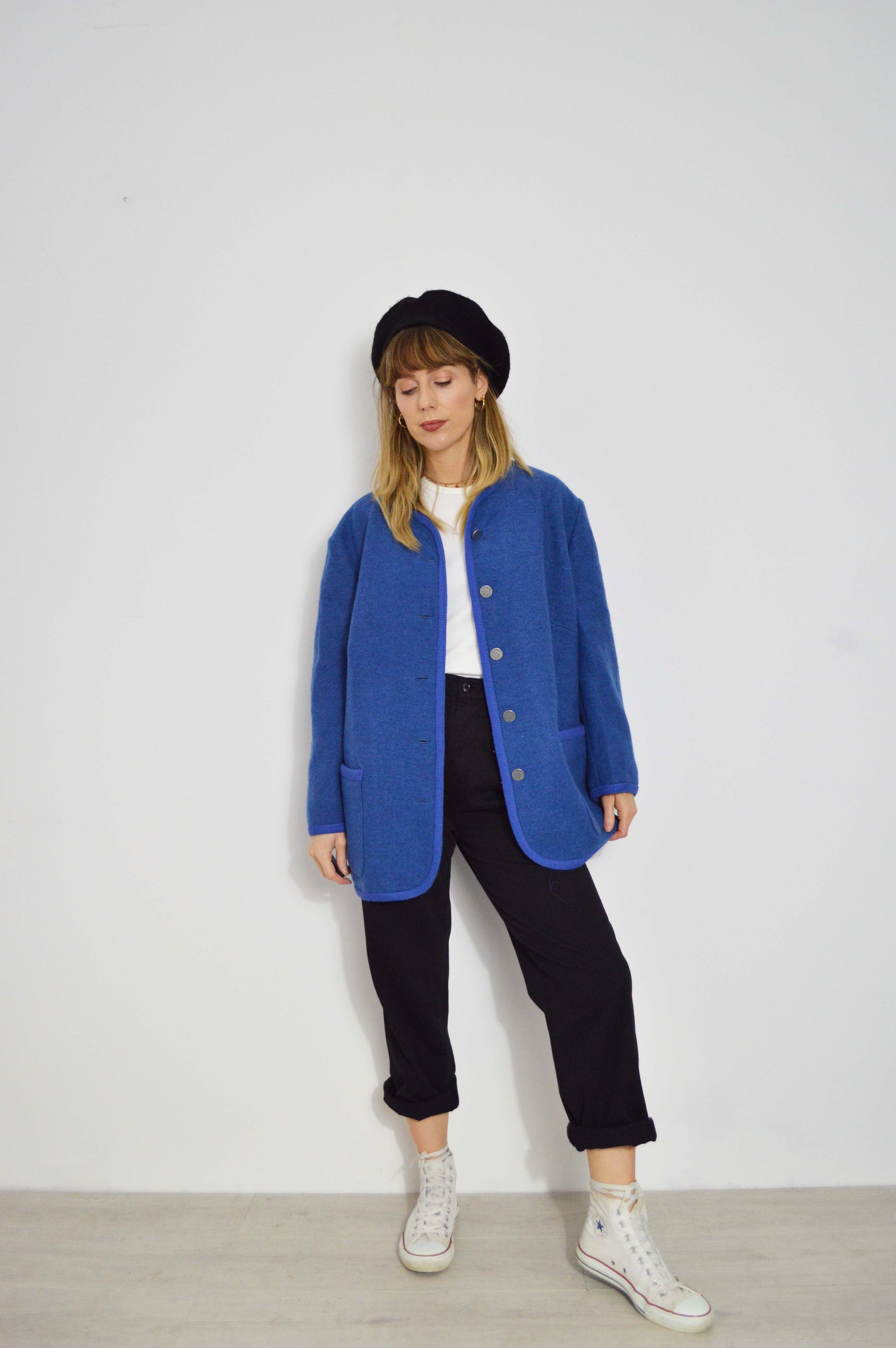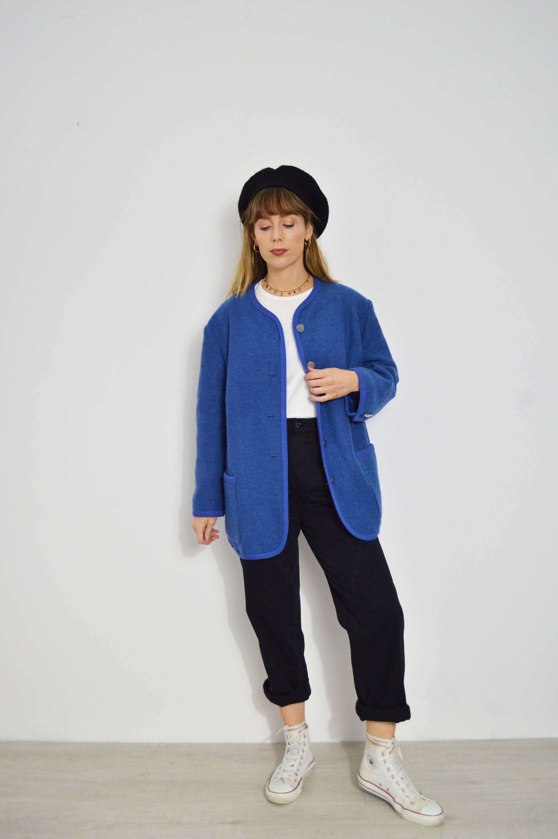 Vintage European liner style 100% wool jackets from circa 1980. Perfect layer with an easy-to-style simple round neckline. Wool is naturally warm and this also has a satin lining - pairs perfectly with knitwear.