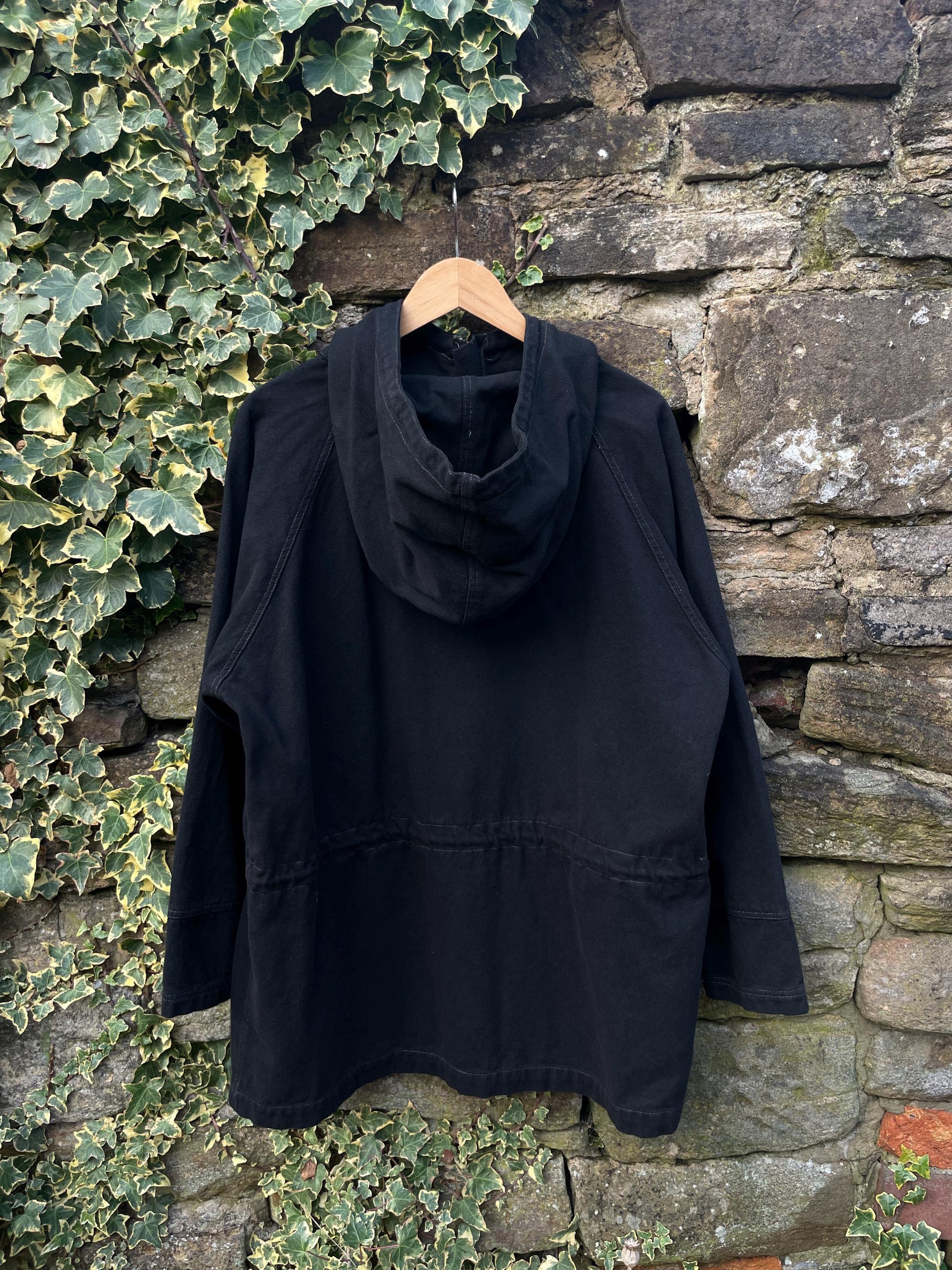 - Drawstring toggle cord waist & hood, pull in to fit