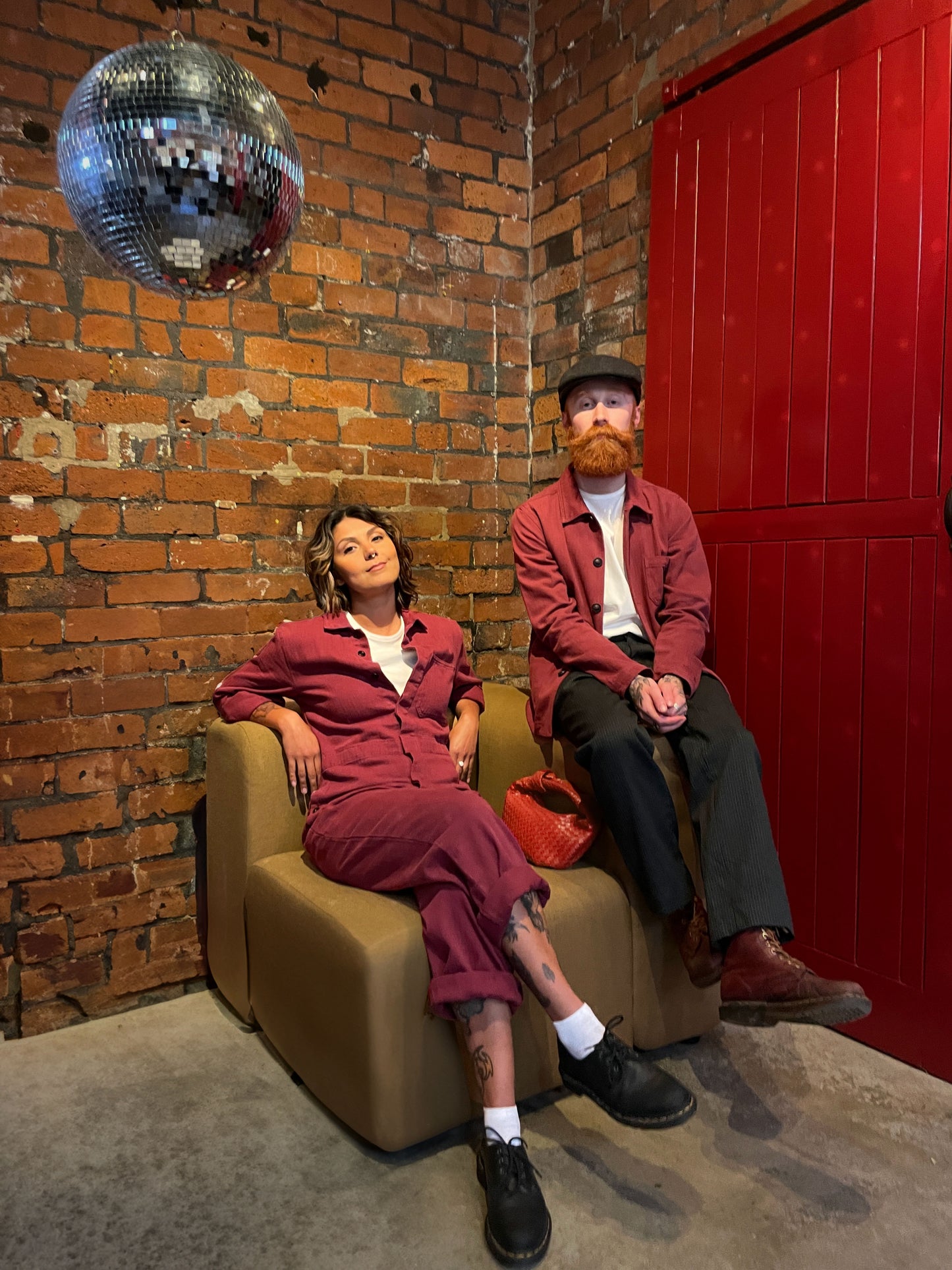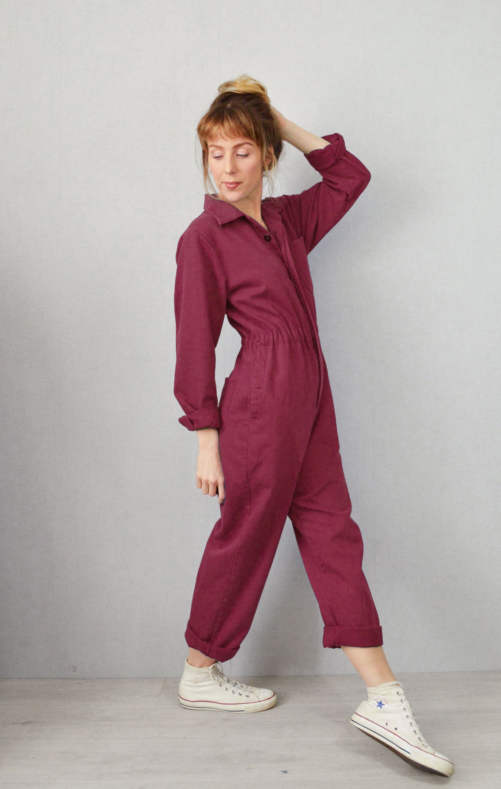 French Workwear Coveralls Jumpsuit Herringbone Burgundy Red