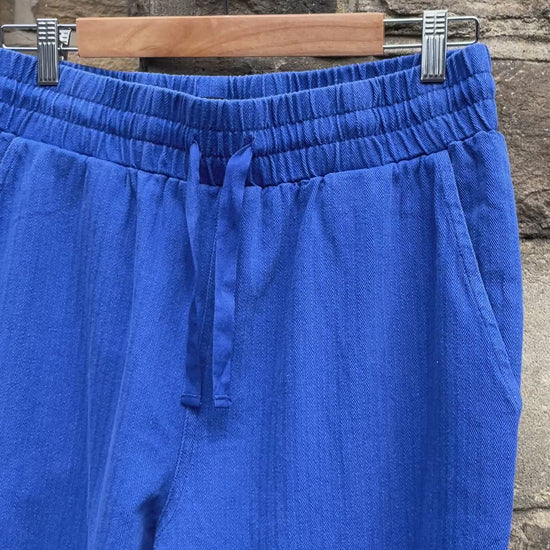 Herringbone French Work Pants Bugatti Blue - Straight Leg Elasticated Joggers Trousers -Relaxed & Soft Worn In Cotton - Various Sizes