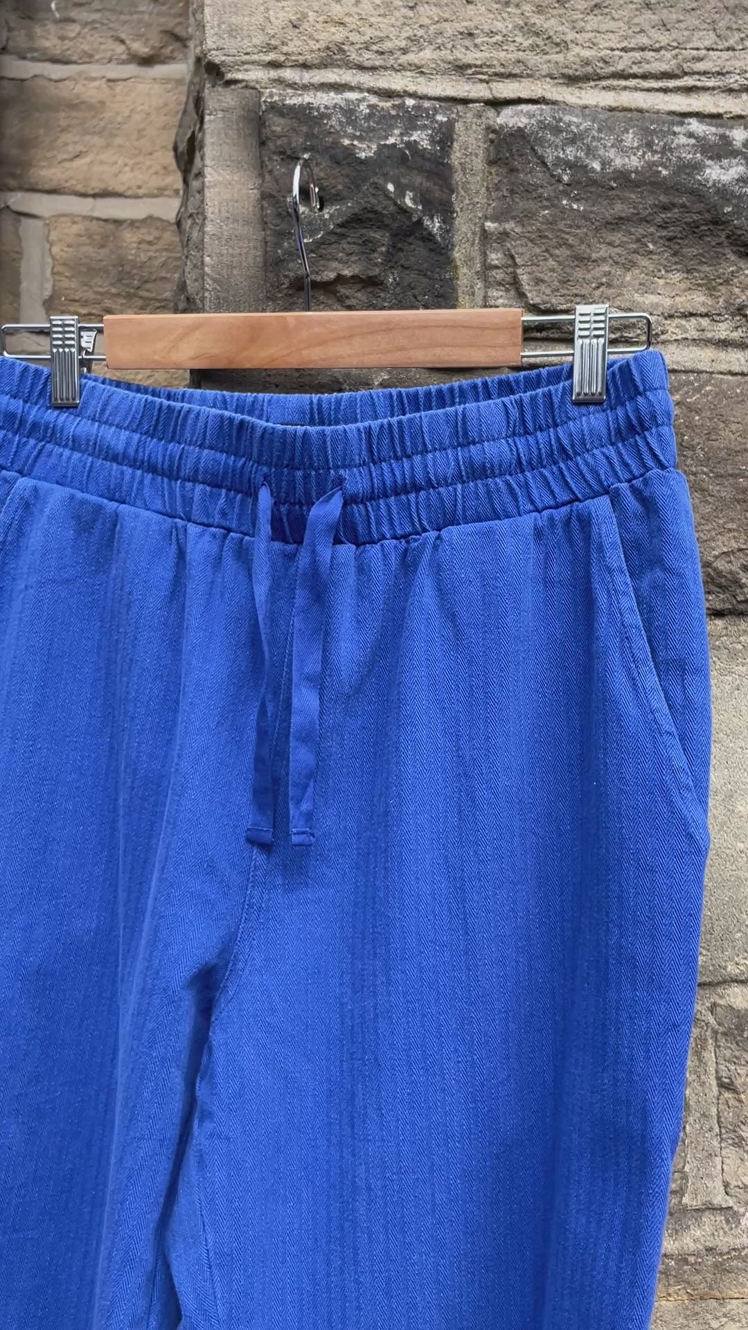 Our own take on the much sought after high waisted French work pant. Made from a butter-soft 100% cotton Bugatti blue fabric, these are roomy enough to be comfy but with a mid high rise for a flattering cut. Classic loose straight leg which looks great worn loose or turned up to your required length.