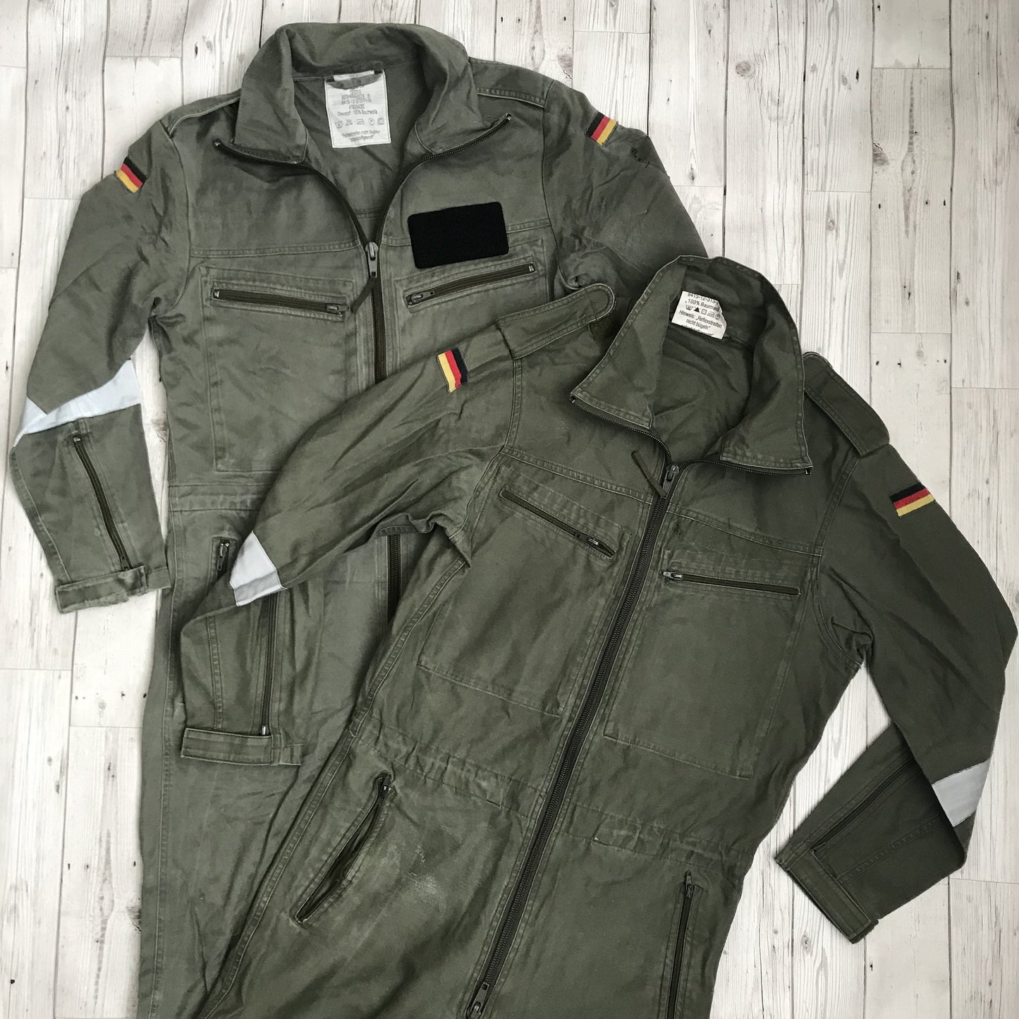 Fantastic zip through flying suits from the German Airforce. Softened, comfortable thick 100% cotton fabric. Loads of character. Tough and hard wearing design. Features include: