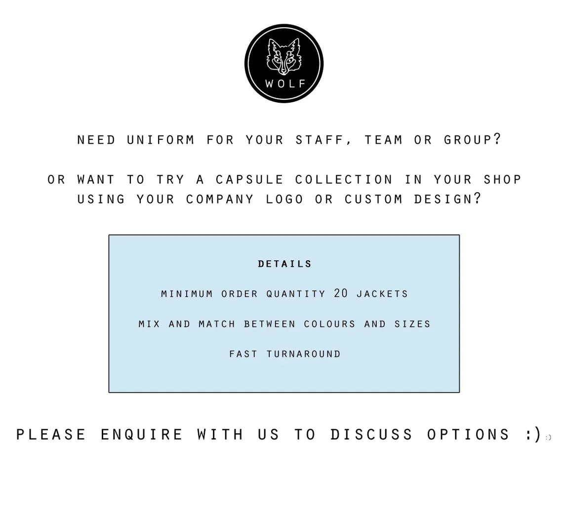 Wholesale Custom Embroidery Chore Jackets, Smocks, Trousers - WOLF Clothing Collective